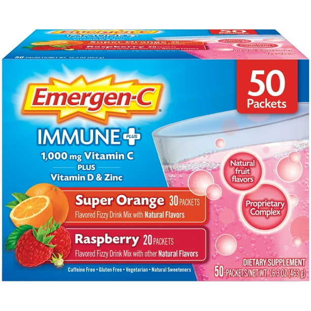 Emergen C Immune 1000mg Vitamin C Powder With Vitamin D Zinc Antioxidants And Electrolytes Immune Support Dietary Supplement Super Orange And Raspberry Flavors 50 Count Walmart Com